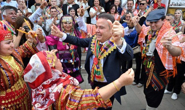 (ANTALYA) - Antalya Büyükşehir Belediyesi tarafından bu yıl 4.'sü düzenlenen Uluslararası Yörük Türkmen Festivali, renkli görüntülere sahne olan temsili Yörük göçüyle başladı. Birbirinden renkli ve geleneksel kıyafetleri, atları, deve kervanları ve davul zurna eşliğinde Antalya sokaklarında temsili Yörük Göçü gerçekleşirken, yerli ve yabancı ziyaretçiler meraklı gözlerle izledi. Antalya Büyükşehir Belediye Başkanı Muhittin Böcek, Yörük Göç'ünü tarihi belediye binası önünde karşılarken, davul zurna eşliğinde oyunlar oynayan Yörüklere eşlik etti.Antalya'da 3 gün boyunca Yörük kültürünün tüm yönleriyle tanıtılıp yaşatılacağı 4. Uluslararası Antalya Yörük Türkmen Festivali başladı. Antalya Büyükşehir Belediyesi tarafından düzenlenen festival, geleneksel temsili Yörük göçü ile şenlendi. Yörük göçünde Türkiye'nin dört bir yanından gelen Yörük derneklerinin temsilcileri, Türki Cumhuriyetleri'nden gelen misafirler geleneksel kıyafetleri ile develer ve atlar eşliğinde renkli görüntüler oluşturdu.Göç duasıyla başladı4. Uluslararası Antalya Yörük Türkmen Festivali için Cumhuriyet Meydanı'nda çelenk sunma töreni düzenlendi. Törene, Antalya Valisi Hulusi Şahin, CHP TBMM Grup Başkan Vekili Ali Mahir Başarır, Antalya Büyükşehir Belediye Başkanı Muhittin Böcek, CHP Genel Başkan Yardımcısı Burhanettin Bulut, İl Genel Koordinatörü PM Üyesi Ali Abbas Ertürk, CHP Antalya Milletvekilleri Cavit Arı, Mustafa Erdem, CHP İl Başkanı Nail Kamacı, ilçe belediye başkanları, Yörük-Türkmen dernek temsilcileri ve çok sayıda vatandaş katıldı.Antalya sokaklarında deve kervanları