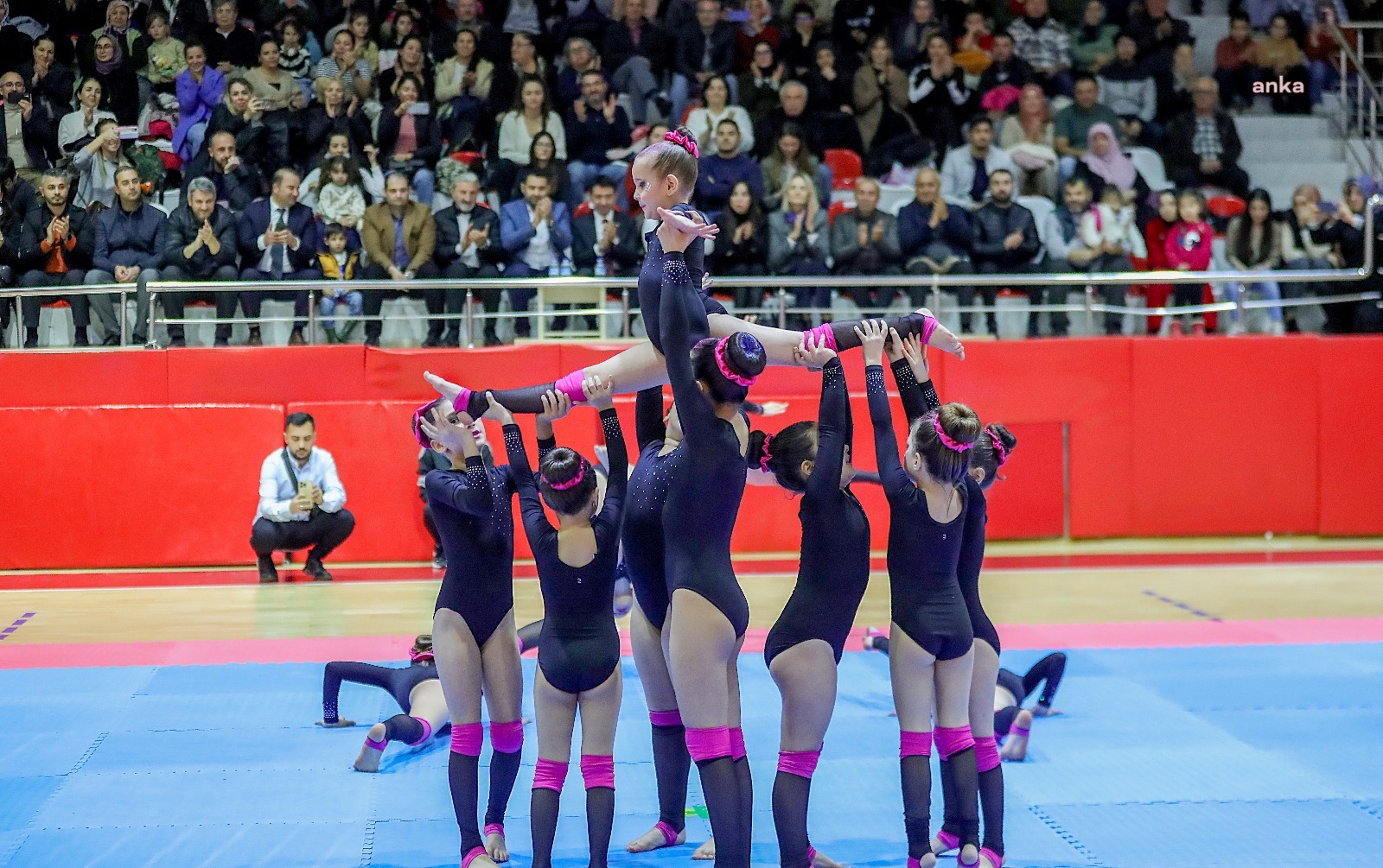 Mustafa Kemal Atatürk Salonu'nda gerçekleşen etkinlikte sahne alan çocuklar, nefes kesen performanslarıyla izleyicilerden büyük alkış aldı.Bayraklı Belediyesi Spor İşleri Müdürlüğü’nün alanında uzman eğitmenleri tarafından 16 branşta verilen kurslardan jimnastik kursuna katılan kursiyerler, yıl boyunca öğrendikleri becerileri sergiledi. Mustafa Kemal Atatürk Salonu’nda gerçekleştirilen etkinlikte sahneye çıkan sporcular, nefes kesen gösterilerinde, esneklik ve ustalık gerektiren hareketleriyle salonu dolduran izleyicilerden büyük alkış aldı. Etkinliğe Bayraklı Belediye Başkanı İrfan Önal’ın yanı sıra CHP Bayraklı İlçe Başkanı Didem Gültekin, meclis üyeleri, Bayraklı Kent Konseyi Yönetim Kurulu Başkanı Aytekin Keskin, yüzlerce sporcu ve aileleri katıldı.Bayraklı Belediye Başkanı İrfan Önal, “16 farklı branşta yaklaşık 3 bin 500 kursiyerimize hizmet verirken, sporun birleştirici gücünü ilçemizin her köşesine taşıyoruz. Futbol, basketbol, voleybol, atletizm, karate, pilates, güreş ve özel gereksinimli branşlara kadar geniş bir yelpazede düzenlediğimiz kurslar, katılımcılarımıza yeteneklerini keşfetme ve geliştirme fırsatı sunuyor. Bu süreçte kursiyerlerimizden birçoğu ulusal düzeyde başarılar elde ederek hepimizi gururlandırıyor. Çocuklarımızın mutluluğu ve başarısı bizlerin de en büyük gurur kaynağı oluyor. Görev süremiz boyunca ilçemize yeni spor alanları ve tesisler kazandırmayı hedefliyor, böylece daha fazla vatandaşımıza ulaşmayı amaçlıyoruz. Yeni yılda da spora ve sporcularımıza olan desteğimizi sürdürmeye kararlıyız. Bayraklı’da büyüyen her çocuğumuzun yanında olmaya devam edeceğiz” dedi.