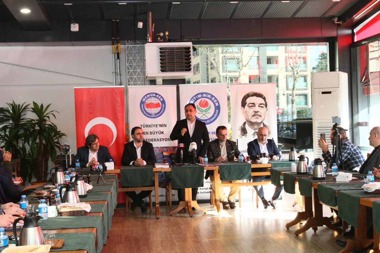 "Kıymetli basın mensupları Eğitim-Bir-Sen olarak Türkiye'nin eğitim çalışanlarının temsili anlamında en büyük Sivil Toplum Kuruluşu olarak Eğitim-Sen hizmet ediyor. Biz şube alanımızda 6 ilçemizde Maltepe Kartal Pendik Tuzla Sultanbeyli ve Adalar ilçelerimizde yoğun bir süreç yürütüyoruz. Aynı şekilde genel merkezimiz bizim gibi yoğun gündemler yürütüyor.
