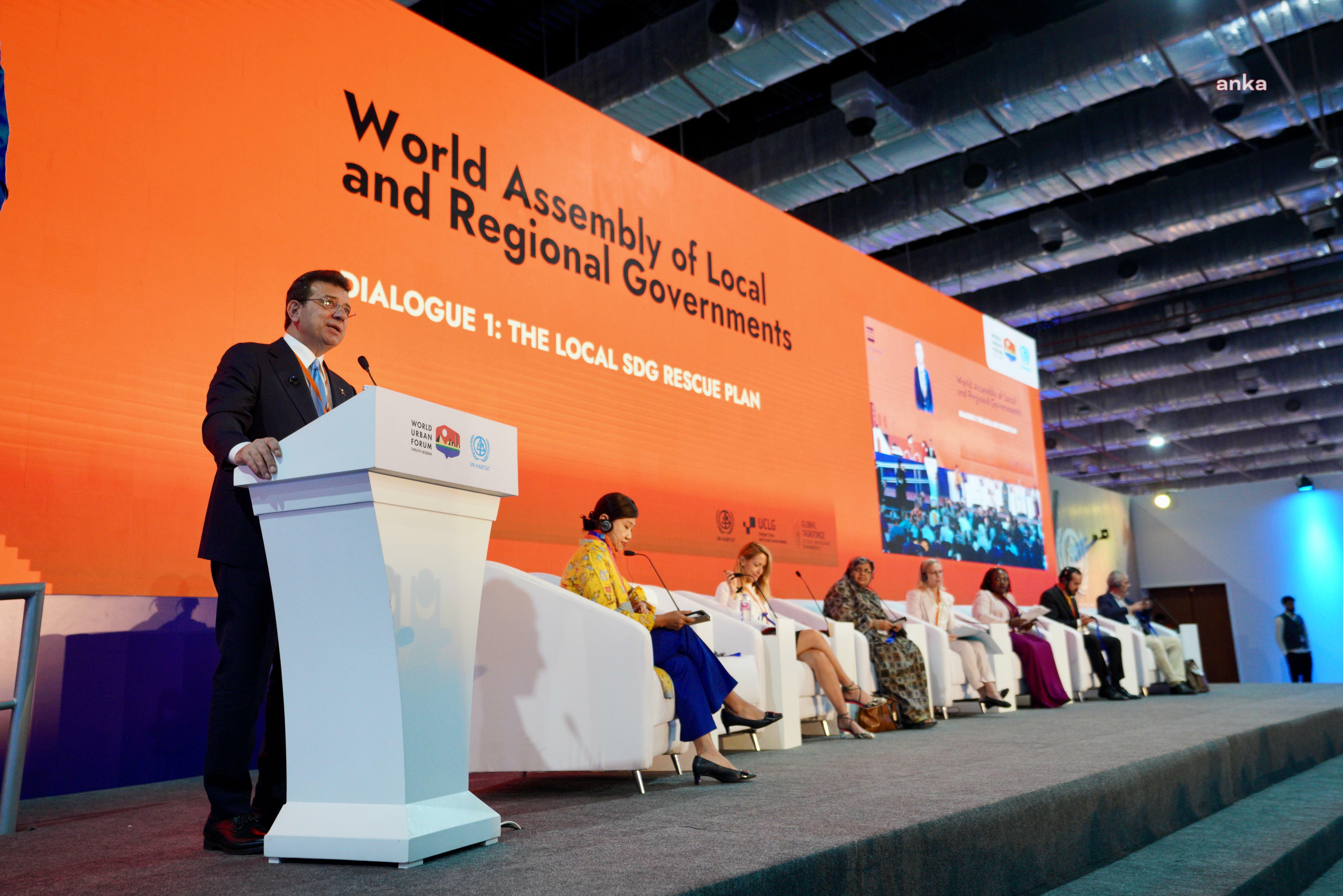 "İstanbul modeli"ni anlattı"İstanbul, son beş yılda, tarihinde ilk defa, aynı anda 10 metro hattı inşa edebilen, kentin yoksul ailelerinin çocuklarına ücretsiz süt ulaştırabilen, 0-4 yaş arası çocuğu olan annelerin toplu ulaşımdan ücretsiz yararlanabildiği, 100'ün üzerinde kreş açabilen, binlerce üniversite öğrencisine yurt, yüz binlercesine burs imkanı verebilen, Kent Lokantaları'nda dar gelirli vatandaşlarına sağlıklı gıda sunabilen bir megaşehir haline geldi. Bu modelimizi hayata geçirirken, 'Sürdürülebilir Kalkınma Amaçları'nı bir rehber kabul ediyoruz. Vatandaşın günlük yaşamını doğrudan etkileyen hizmetleri sunan yerel yönetimler olarak, sürdürülebilir bir geleceğin inşasında kilit bir rol ve sorumluluğa sahibiz. Kentlerde yapılan her sosyal, ekonomik ve çevresel yatırım, '2030 Gündemi'nin hedeflerine ulaşmamıza katkı sağlıyor. Bu nedenle, 'Yeni Kentsel Gündem'in kapsamlı yol haritası ile küresel amaçları yerel düzeyde uygulamak için daha fazla iş birliği içinde olmalıyız."Yerel yönetimler ve özel sektör arasında kurulmakta olan iş birliklerinin önemini vurgulamak isterim"Özellikle 'Yerel 2030 Koalisyonu', amaçların yerelleştirilmesi ve iyi uygulamaların yaygınlaştırılması açısından önem taşıyor. Birleşmiş Kentler ve Yerel Yönetimler Teşkilatı (UCLG) ve Birleşmiş Milletler (BM) HABITAT tarafından başlatılan, 'Şehirler 2030'a Geri Sayıyor' girişimi de bu alandaki stratejik çabalarımızı destekliyor. Bu süreçte, yerel yönetimler ve özel sektör arasında kurulmakta olan iş birliklerinin önemini vurgulamak isterim. BM'nin 'Sürdürülebilir Kalkınma Amaçları Kurtarma Planı'nı, 'Yeni Kentsel Gündem' gibi yol haritalarıyla birleştirerek, kendi yerel kurtarma planlarımızı oluşturmanın sürece ivme kazandıracağına inanıyorum."Gelin hep beraber barış ve adalet için daha fazla inisiyatif alalım, sesimizi yükseltelim"Bugün Kahire'de, özellikle 16 numaralı, 'Barış, Adalet ve Güçlü Kurumlar' başlıklı, 'Sürdürülebilir Kalkınma Amacı'nın gerçekleştirilmesine katkıda bulunmak için, siz Belediye Başkanı ve yerel yönetici dostlarıma çağrıda bulunmak istiyorum. Barışın ve adaletin olmadığı bir yerde, kalkınmadan bahsetmemiz mümkün değil. Bu nedenle, gelin hep beraber barış ve adalet için daha fazla inisiyatif alalım, sesimizi yükseltelim. Biz, İstanbul olarak bunu Balkanlar'da başardık. Bugün 65 şehrin bir araya geldiği Balkan Şehirleri İşbirliği Ağı B-40'ı, 2021 yılında kurduk. Bu yıl ise 12-14 Aralık tarihlerinde Orta Doğu ve Kuzey Afrika şehirlerinin belediye başkanlarını, bölgesel barış ve iş birliğinin sağlanması için, yerel yönetimler olarak neler yapabileceğimizi konuşmak üzere, İstanbul'a davet ettik. Gazze ve şimdi Lübnan'da devam etmekte olan insanlık trajedisini durdurmak ve yaraların sarılmasını sağlamak için, hepimizin üzerine düşen sorumluluklar var. Bu sorumluluğu hisseden ve bölgesel barış için başlatacağımız sürece katkı vermek isteyen meslektaşlarımı İstanbul'da buluşmaya davet ediyorum."Adalet için, haksızlığa uğrayan meslektaşlarımız için de sesimizi yükseltmek gerektiğine inanıyorum"Bu şehir diplomasisi platformları sayesinde, şehirlerimizi ve dünyamızı daha adil, sürdürülebilir ve dirençli bir geleceğe taşımak amacıyla kararlı adımlar atmaya devam etmeliyiz. Yine adalet için, haksızlığa uğrayan meslektaşlarımız için de sesimizi yükseltmek gerektiğine inanıyorum. Ülkemde, seçilmiş yerel yöneticilerimizin görevden alınarak, yerlerine kayyum atanması, her geçen gün daha yaygınlaşıyor. Geçen hafta, mensubu olduğum ana muhalefet partisinin yönetimindeki Türkiye'nin en büyük ilçesinin belediye başkanı Prof. Ahmet Özer tutuklandı. Bugün de Mardin, Batman ve Halfeti'den üç belediye başkanı daha görevden alındı ve yerlerine kayyum atandı. Refah, adalet ve barış için çalışan yerel yöneticilerimize ve onları seçen halkın iradesine bu müdahale, ne hukuken ne de siyaseten haklı gösterilemez. Bu düşüncelerle Dünya Kent Forumu'nun hepimiz için verimli geçmesini diliyorum."