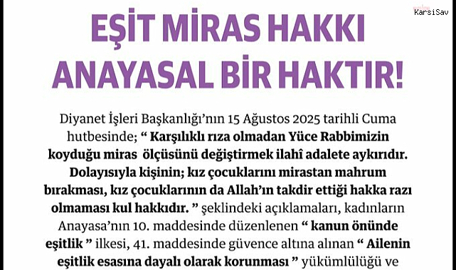 İstanbul Barosu Kadın Hakları Merkezi, Diyanet İşleri Başkanlığı'nın Cuma hutbesinde yer verdiği kadınların miras hakkına ilişkin açıklama yaptı.