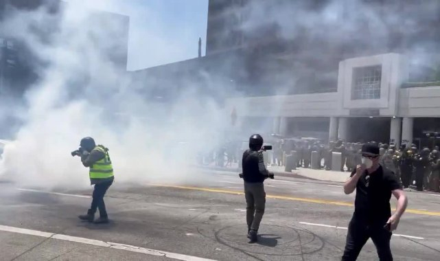 Daha önce, yaklaşık bir düzine Ulusal Muhafız, İç Güvenlik Bakanlığı personeli ile birlikte, Los Angeles şehir merkezindeki bir federal binanın dışındaki bir grup göstericiyi geri püskürtmüştü. ABD Kuzey Komutanlığı, Kaliforniya Ulusal Muhafızları'nın 300 üyesinin, Los Angeles bölgesindeki üç noktaya konuşlandırıldığını açıkladı. Görevlerinin, “federal personeli ve mülkleri korumakla sınırlı” olarak belirtildi.