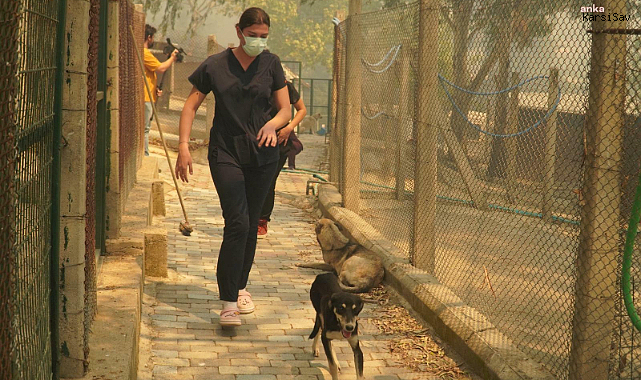 İzmir'in Karşıyaka ilçesi Yamanlar Karatepe mevkisinde dün akşam saatlerinde çıkan yangın nedeniyle Karşıyaka Belediyesi Celal Üner Hayvan Barınağı tahliye edildi. Vatandaşlar, kucaklarına aldıkları hayvanları yangından uzak bir alana taşıdı.