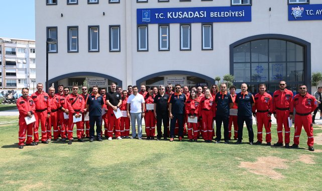 (AYDIN) - Kuşadası Belediyesi tarafından olası afetlere karşı personel arasından gönüllülük esasına göre seçilerek oluşturulan hafif düzey arama kurtarma ekibi, Aydın İl Afet ve Acil Durum Müdürlüğü’nde (AFAD) verilen ‘Enkazda Arama ve Kurtarma Temel Eğitimi’ni başarıyla tamamladı. Beş günlük eğitimin ardından 31 kişiden oluşan ekip, sertifikalarını Belediye Başkanı Ömer Günel’in elinden aldı.