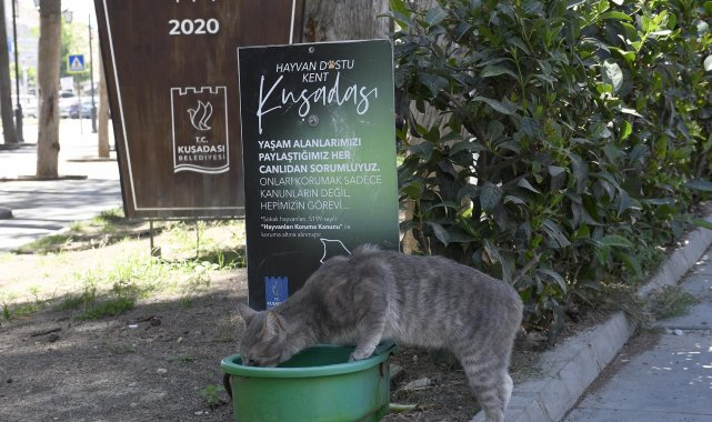 (AYDIN)- Kuşadası Belediyesi, mevsim normalleri üzerinde seyreden hava sıcaklığından olumsuz etkilenebilecek sokak hayvanlarına karşı vatandaşlardan duyarlı olmalarını istedi.