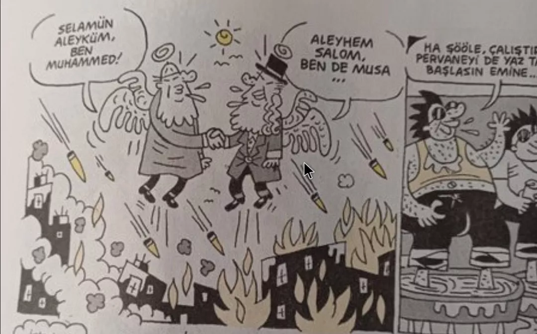 (İSTANBUL)- İstanbul Cumhuriyet Başsavcılığı önceki akşam, LeMan dergisinin 26 Haziran tarihli sayısındaki bir karikatüre Hz. Muhammed ve Hz. Musa'nın karikatürize edildiği ve bu çizim ile "halkı kin ve düşmanlığa tahrik ve aşağılama" suçunun işlendiği iddiasıyla soruşturma başlatmıştı. Soruşturma kapsamında Ali Yavuz, Aslan Özdemir, Cebrail Okçu, Doğan Pehlevan, Mehmet Tunçay Akgün ve Zafer Aknar hakkında gözaltı kararı verilmişti. Doğan Pehlevan, Ali Yavuz, Zafer Aknar ve Cebrail Okçu gözaltına alınmıştı. Emniyet ifadelerinin ardından İstanbul Adliyesi'ne sevk edilen 4 kişi savcılık ifadesi alınmadan dosya üzerinden tutuklama istemiyle 5. Sulh Ceza Hakimliği'ne gönderildi. Hakimlik 4 kişi hakkında tutuklama kararı verdi, yurt dışında oldukları belirtilen iki kişi hakkında da yakalama kararı verildi.Tutuklama istemiyle Sulh Ceza Hakimliği'ne sevk yazısında ise şu ifadeler dikkat çekti:"İslam dini peygamberi olması nedeniyle halkın bir kesiminin benimsediği dini değer kapsamında değerlendirilmesi gereken Hz. Muhammed ile Hz.Musa'nın tasvir edilerek, bir şehrin üzerine bombalar düştüğü anın betimlendiği, bu sırada tasvir edilen Hz. Muhammed'in 'Selamün Aleyküm, ben Muhammed" şeklinde, Hz.Musa'nın ise 'Aleyhem Salom, ben de Musa' şeklinde sözler söylediğinin karikatürize edildiği, bu suretle şehrin bombalanmasından Hz. Muhammed ile Hz.Musa'nın sorumlu tutulduğu, karikatürün kışkırtıcı tutum ve davranışlar sergilemeye yönelik ifadeler ve görseller içerdiği..."Leman dergisinde yayınlanan karikatür