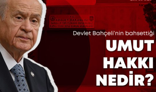 MHP Lideri, bu kapsamda ''Umut hakkı''nın kullanımıyla ilgili yasal düzenleme de istedi. ''Umut hakkı" ömür boyu hapis cezasına çarptırılan hükümlülerin "belli bir süreden sonra toplumla buluşmasını sağlayan bir hak'' olarak biliniyor.İmralı F Tipi Yüksek Güvenlikli Cezaevi'nde 25 yılı aşkın bir süredir hükümlü bulunan terör örgütü PKK Lideri Abdullah Öcalan için MHP Genel Başkanı Devlet Bahçeli'den önemli bir çıkış geldi.Bahçeli, geçtiğimiz hafta grup toplantısında, Öcalan'a; tek taraflı olarak 'terörün bittiği, örgütün tasfiye edileceğini ilan etmesi' çağrısında bulunmuştu.Bahçeli, partisinin bugünkü grup toplantısında ise bu önerisini bir adım daha ileri götürdü. ''Kandil ve Edirne''yi devre dışı bırakarak, çözümünün adresini ''İmralı'' olarak gösteren Bahçeli, "Terörist başının tecridi kaldırılırsa gelsin TBMM'de DEM Parti grubunda konuşsun, terörün tamamen bittiğini, örgütün lağvedildiğini haykırsın. Bu dirayet ve kararlılığı gösterirse, 'Umut hakkı'nın kullanımıyla ilgili yasal düzenlemenin yapılması ve bundan yararlanmasının önü de ardına kadar açılsın'' çağrısında bulundu.Bahçeli'nin Öcalan'a yaptığı çağrıda kullandığı 'Umut hakkı'nın ne olduğu, kimlere nasıl uygulandığı konusu gündeme geldi. ''Umut Hakkı'' nedir?Öcalan'a verilen idama cezası, bu cezanın kaldırılmasının ardından ağırlaştırılmış mübebet hapis cezasını dönüştürülmüştü. Bu cezayı alanlar, hiçbir şekilde lehe infaz hükümlerinden faydalanamıyor ve ceza ölünceye kadar infaz ediliyor.''Umut hakkı" ömür boyu hapis cezasına çarptırılan hükümlülerin "belli bir süreden sonra toplumla buluşmasını sağlayan bir hak'' olarak biliniyor.Başka bir ifade ile ''Umut hakkı'', öngörülebilir bir infaz biçimi getirerek, kişinin yeniden özgürlüğüne kavuşma umudunu korumasını sağlıyor.Türk Ceza Kanunu ve İnfaz Kanunu'nda bu yönde bir hüküm bulunmuyor. Bahçeli'nin de belittiği gibi bu konuda yasal bir düzenleme yapılması gerekiyor.