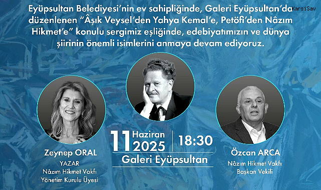 Şair Nâzım Hikmet, ölümünün 62'nci yıl dönümü nedeniyle Eyüpsultan'da düzenlenecek Nâzım Hikmet Kültür ve Sanat Vakfı Yönetim Kurulu üyesi Zeynep Oral ile Vakıf Başkanvekili Özcan Arca'nın konuşmacı olacağı söyleşiyle anılacak.