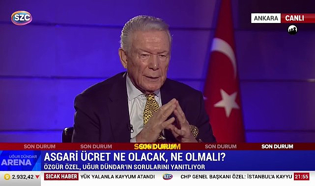 CHP Genel Başkanı Özgür Özel, Sözcü TV'de Özel Röportaj programında gazeteci Uğur Dündar'ın sorularını yanıtladı. Özel, asgari ücret belirleme çalışmalarına ilişkin şunları söyledi:"Bu ülkede ekonomi o kadar kötü yönetildi ki olmayacak iki açmazın içine düştük. Bir, döviz kuru. Bizler için çok yüksek, ihracatçımız için çok düşük. Bu yüzden Türkiye ihracatçıları, -özellikle tekstil olmak üzere- çok zor durumdalar. İkincisi de asgari ücret. Alan için çok düşük, veren için çok yüksek. Çünkü maalesef ürettiğimiz ürünler de yüksek katma değerli ürünler olmadığı için Türkiye'de ihracatın yüzde dört buçuğu yüksek katma değerli. Örneğin diğer ülkelerde 10,12,14 diye gidiyor. Vietnam, yüzde 30'lara kadar çıkmış durumda. Şimdi siz cep telefonu üretip satıyor olsanız Finlandiya'nın asgari ücretiyle sizi mukayese ederler. Onu mukayese ederler ve sizin asgari ücretiniz o düzeylerde olsa olur ama siz penye ihraç ettiğiniz zaman Mısır'daki asgari ücret, Türkmenistan'daki asgari ücret hatta çok daha küçük ülkelerdeki asgari ücret başınıza dert oluyor.'Asgari ücret, verildiği gün 17 bin 2 liraydı, bugün o günkü alım gücüyle 10 bin liraya düştü'Böyle bir zorluk var ve burada insanlar öyle haksızca o kadar düşük bir asgari ücrete zorlanıyorlar ki asgari ücret 17 bin 2 lira. Verildiği gün 17 bin 2 liraydı, bugün o günkü alım gücüyle 10 bin liraya düştü. Korkunç bir şey. Şimdi bu asgari ücrete enflasyon oranında zam yapılması gerekirken ve üstüne büyüme payı, refah payı verilmesi gerekirken beklenen enflasyon hatta daha altında diye eveleme-geveleme 21 bin lira gibi bir asgari ücret telaffuz ediyorlar. Bu olacak bir iş değil. Olması gereken asgari ücretlinin hisettiği enflasyon var. O ne tüketiyorsa, o çok basit şeyler ve maalesef onlar çok pahalı. Asgari ücretli, TÜİK'in baktığı pinpon topunu tüketmiyor. Bakır kablo tüketmiyor. Asgari ücretli beyaz peynir tüketiyor. Ekmek tüketiyor. Ayçiçeği yağı tüketiyor. Çocukları için mama tüketiyor. Çocuk bezi tüketiyor. Burada yüzde 80'e varan bir enflasyon var. Zaten TÜİK'in rakamlarıyla bile 50'deyiz şu anda.Şimdi geldiğimiz nokta şu, eğer biz bu asgari ücretliye 35 bin lira vermezsek aslında bu işin bir kurtarırı yok. Yeni yeni cesaretlenen Türk-İş'e, Hak-İş'e, DİSK'e diyorum ki, 30 bin liranın altında bir asgari ücreti kabul ederseniz sizden her ay daha eline almadan maaşını sendika aidatı kesiliyor, bu kitlelere büyük haksızlık yapmış olursunuz. O yüzden hep beraber en az 30 bin lira... hatta sloganı da şu olsun, 'talep 30, altında biz yokuz' ve 'bunun altında bir asgari ücret olursa Türkiye'de genel grev olacak' olsun. Ne diyorsa sendikalar onun arkasında hep beraber duralım. 'Bunun altında bir asgari ücretle Türkiye'de hayat durur' diyelim. Bunu Hak-İş de desin, Türk-İş de desin, DİSK de desin, CHP de desin. Bence MHP de desin, İYİ Parti'de desin, Saadet de desin bu iş olsun.'MHP muhalefetteyken en yüksek asgari ücretleri öneriyordu, şimdi susuyor'MHP muhalefetteyken en yüksek asgari ücretleri öneriyordu, şimdi susuyor. Geçen ocak ayı itibariyle 10 bin liralık alım gücüyle şu an insanlar perişan durumdalar. O yüzden biz 30 bin lira asgari ücret istiyoruz. Bu talebi dillendireceğiz. Her fırsatta bundan sonra asgari ücretin 30 bin lira olduğunu söyleyeceğiz. Bu konuda mitingler yapabiliriz. Büyük çağrıyı büyütebiliriz. Bu çağrıya kulak versinler. 30 bin liranın altında asgari ücret sefalettir. İnsanların hakkı 35 bin lira aslında. Çünkü arada da zam verilmedi. Hiç olmazsa yüzde 80 asgari ücretlinin hissettiği enflasyonu 17 bine uyguladığınızda yaklaşık 30 bin oluyor. Bu beklentiyi diri tutmak lazım."