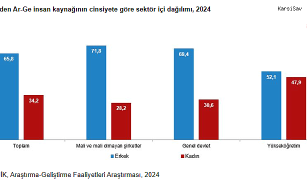 Kadınların en yüksek istihdam oranı yüzde 54,7 ile Antalya, Isparta, Burdur'da...Hanehalkı İşgücü Araştırması'na göre, 2024 yılında 15 yaş ve üstü nüfusun istihdam oranının yüzde 49,5 iken bu oran kadınlarda yüzde 32,5, erkeklerde ise yüzde 66,9 olarak kaydedildi. En yüksek istihdam oranı yüzde 54,7 ile Antalya, Isparta, Burdur bölgesinde, en düşük istihdam oranı ise yüzde 39,5 ile Mardin, Batman, Şırnak, Siirt ve Van, Muş, Bitlis, Hakkari bölgelerinde olduğu tespit edildi. En yüksek erkek istihdamı yüzde 72,3 ile Tekirdağ, Edirne, Kırklareli bölgesinde görülürken, en düşük erkek istihdamı ise yüzde 59,0 oranıyla Şanlıurfa, Diyarbakır bölgesinde gerçekleşti. Yarı zamanlı çalışanların istihdam içindeki oranı 2024 yılında yüzde 12,1 olarak kaydedildi. Bu oranın kadınlarda yüzde 18,3, erkeklerde yüzde 9,0 olduğu tespit edildi. Hanesinde 3 yaşın altında çocuğu olan 25-49 yaş grubundaki bireylerin istihdam oranı, 2014 yılında yüzde 59,8 olarak kaydedilerken 2024 yılında yüzde 60,0 oranında kaydedildi. Bültende buna ilişkin, "Bu oran cinsiyete göre incelendiğinde, 2024 yılında hanesinde 3 yaşın altında çocuğu olan 25-49 yaş grubundaki kadınların istihdam oranının yüzde 26,9, erkeklerin istihdam oranının ise yüzde 90,9 olduğu görüldü" bilgilerine yer verildi. Kadın Büyükelçi oranı 2025'te yüzde 28,4'e yükseldiDışişleri Bakanlığı verilerine göre kadın Büyükelçi oranı 2011 yılında yüzde 11,9 iken 2025 yılında yüzde 28,4'e yükseldi. Erkek Büyükelçi oranı 2011'de yüzde 88,1 iken 2025 yılında yüzde 71,6'e düştü. TBMM verilerine göre, 2025 yıl sonu itibarıyla 592 Milletvekili'nden 118'i kadın iken, 474'ünün erkek olduğu kaydedildi. TBMM'deki kadın milletvekili oranı 2007'de yüzde 9,1 iken, 2025 yılında yüzde 19,9'a yükseldi.Yükseköğretim İstatistiklerine göre yükseköğretimde kadın profesör oranı 2010-2011 öğretim yılında yüzde 27,6 iken 2024-2025 öğretim yılında yüzde 34,9 olarak kaydedildi. Yükseköğretimde görevli kadın doçent oranı, 2010-2011 öğretim yılında yüzde 32,2 iken 2024-2025 öğretim yılında yüzde 43,3 oldu.Hanehalkı İşgücü Araştırması'nın sonuçlarına göre üst ve orta düzey yönetici pozisyonundaki kadın oranı 2012 yılında yüzde 14,4 iken 2024 yılında bu oran yüzde 21,5'e yükseldi. Borsa İstanbul'da işlem gören en büyük 50 şirketin (BİST 50) yönetim kurulu üyelerinde, 2016 yılında yüzde 12,2 olan kadın üye oranı 2025 yılında yüzde 18,3'e çıktı.Bültende, kadın Araştırma-Geliştirme (Ar-Ge) personeli oranına ilişkin, "Belirli bir dönemde (genellikle bir takvim yılı) bir kişi ya da grup tarafından Ar-Ge faaliyetleri için harcanan sürenin aynı dönemde çalışılan toplam süreye bölünmesi yoluyla hesaplanan Tam Zaman Eşdeğeri (TZE), 0 ile 1 arasında bir değer alarak uluslararası Ar-Ge personeli karşılaştırmalarında kullanılmaktadır. Araştırma-Geliştirme Faaliyetleri Araştırması sonuçlarına göre, TZE cinsinden kadın Ar-Ge personel sayısı, 2024 yılında 106 bin 74 kişi ile toplam Ar-Ge personel sayısının yüzde 34,2'sini oluşturdu. Sektörler itibarıyla TZE cinsinden kadın Ar-Ge personel oranı, yükseköğretimde yüzde 47,9, kar amacı olmayan kuruluşların da dahil edildiği genel devlette yüzde 30,6, mali ve mali olmayan şirketlerde ise yüzde 28,2 oldu" bulgularına yer verildi.