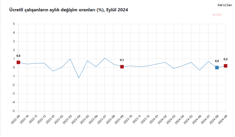Ücretli çalışanların alt detaylarına bakıldığında; 2024 Eylül ayında ücretli çalışanlar aylık olarak sanayi sektöründe yüzde 0,2 azaldı, inşaat sektöründe yüzde 0,3 arttı ve ticaret-hizmet sektöründe yüzde 0,4 arttı.