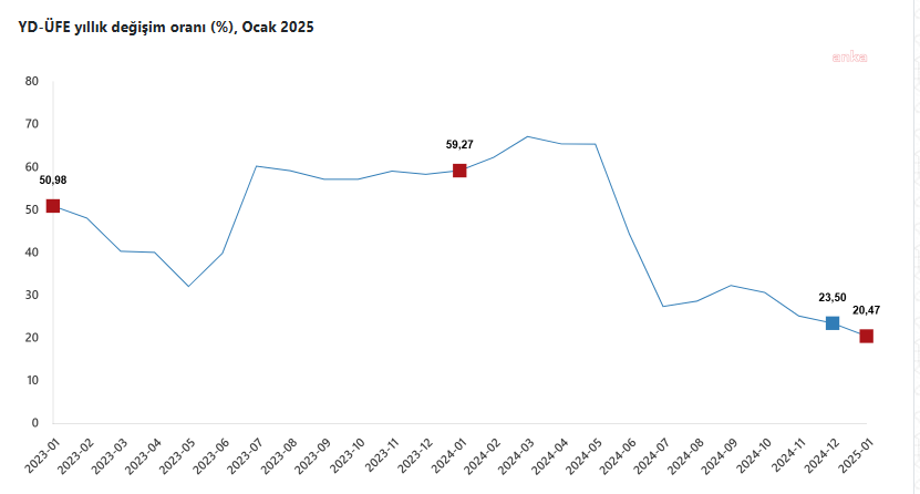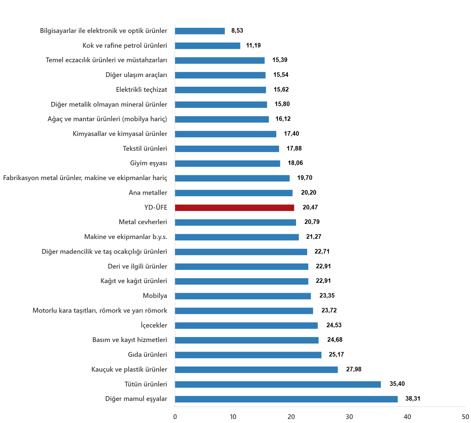 YD-ÜFE imalat ürünlerinde yıllık yüzde 20,45 arttı