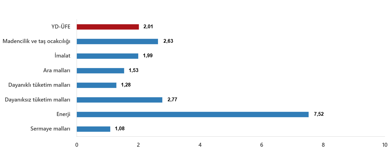 YD-ÜFE imalat ürünlerinde aylık yüzde 1,99 arttı