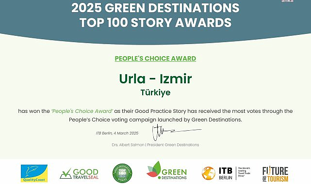 (İZMİR) - Urla Bağ Yolu, dünya çapında ödü kazandı. 2025 ITB Berlin Turizm Fuarında gerçekleşen "Green Destinations Story Awards" kapsamında en iyi 100 Hikâye arasında yer alan destinasyonlar arasında halk oylaması yapıldı. Yapılan oylamada, Urla Bağ Yolu, "Urla'nın Şarap Mirasını Keşfetmek: Urla Bağ Yolu'nun Doğuşu" hikâyesiyle, "People's Choice" ödülünü kazandı.Green Destinations özel kategori ödülü olan "Halkın Seçimi Ödülü", 13-25 Ocak 2025 tarihleri arasında yapılan anket uygulamasında kullanılan 140 bin oydan, Urla Bağ Yolu en çok oyu alarak en iyi destinasyon seçildi."Bu onur hepimizin"Berlin'de düzenlenen ödül törenine katılan Urla Belediye Başkanı Selçuk Balkan, çok gururlu ve mutlu olduklarını belirterek, ilçenin doğaya duyarlı turizm politikalarının ne denli başarılı olduğunu bir kez daha kanıtladığını, Urla'nın doğayı koruyarak büyümeye ve dünya çapında ilham vermeye devam edeceğini vurguladı:"Her zaman bizleri destekleyen, bu özel ödülü almamızda büyük emeği ve katkısı olan başta İzmir Büyükşehir Belediye Başkanımız Sayın Cemil Tugay olmak üzere, bürokratlarına ve çalışma arkadaşlarına çok teşekkür ediyorum. Bu onur hepimizin; Türkiye'nin, İzmir'in, Urla'nın."