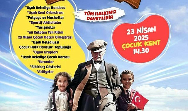 Uşak Belediyesi, 23 Nisan Ulusal Egemenlik ve Çocuk Bayramı'nı şenlikler, tiyatro gösterileri ve konserler ile kutlayacak. Belediye ayrıca etkinlik alanlarına ulaşım için ücretsiz servis hizmeti sunacak.
