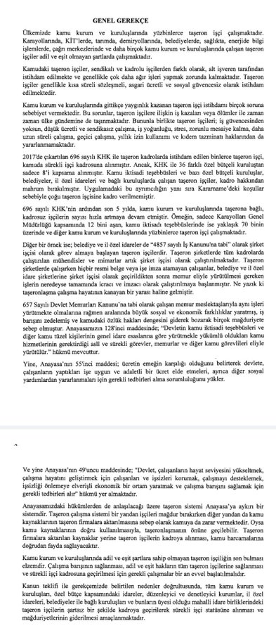 Yapılan sosyal medya hesabında;"SÖZÜMÜZÜN ARKASINDAYIZ!Birçok kamu kurum ve kuruluşunda çalışan taşeron işçilerinin, kanun teklifi ile gerekçemizde belirtilen nedenler doğrultusunda, şartsız bir şekilde kadroya geçirilerek sürekli işçi statüsüne alınması ve mağduriyetlerinin giderilmesine ilişkin kanun teklifi İstanbul Milletvekilimiz Doğan Bekin tarafından TBMM’ye verilmiştir." denildi.Kanun teklifini ise Genel Merkez Gençlik Kolları Başkanı Melih Güner paylaştı.